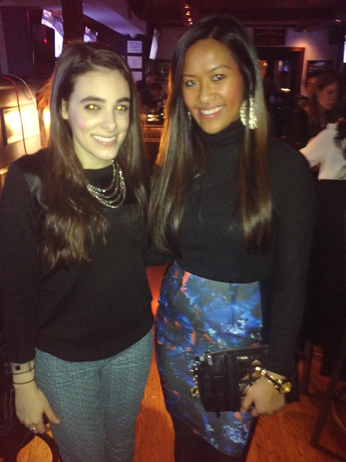 The blogging event was held in Lincoln Park at a bar called Diag and Grill Bar. My roommate and I arrived there around 8, and to our surprise the room section was filled with many people. Not going to lie, it was a bit uneasy and very intimidating at first, but once we settled in, we were introduced to a few bloggers, friends supporters, and designers. Overall, it was just a really great time, and I plan on attending more events this year (as it’s on my bucket list for 2014!). I also believe I should try at least to go to networking events alone some time (I know scary!), but it allows and forces you to be more outgoing and social!