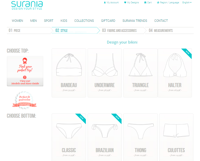 A cool thing about Surania is that every season, they offer new swimwear selections. Surania offers over 8,000 possible combinations for a customized bikini or swimsuit!