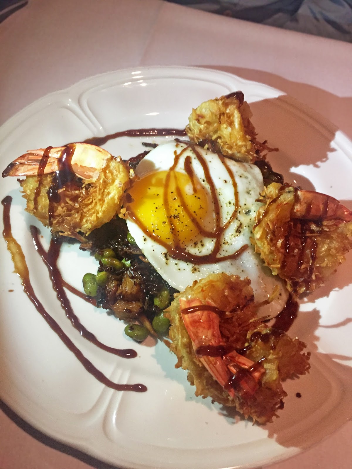 Then for entrees: 8 oz filet, Chilean Sea Bass and Green Tea Smoked Coconut Tempera Shrimp