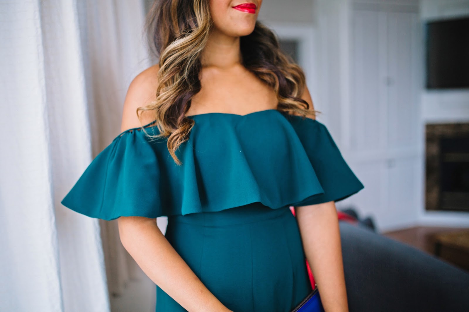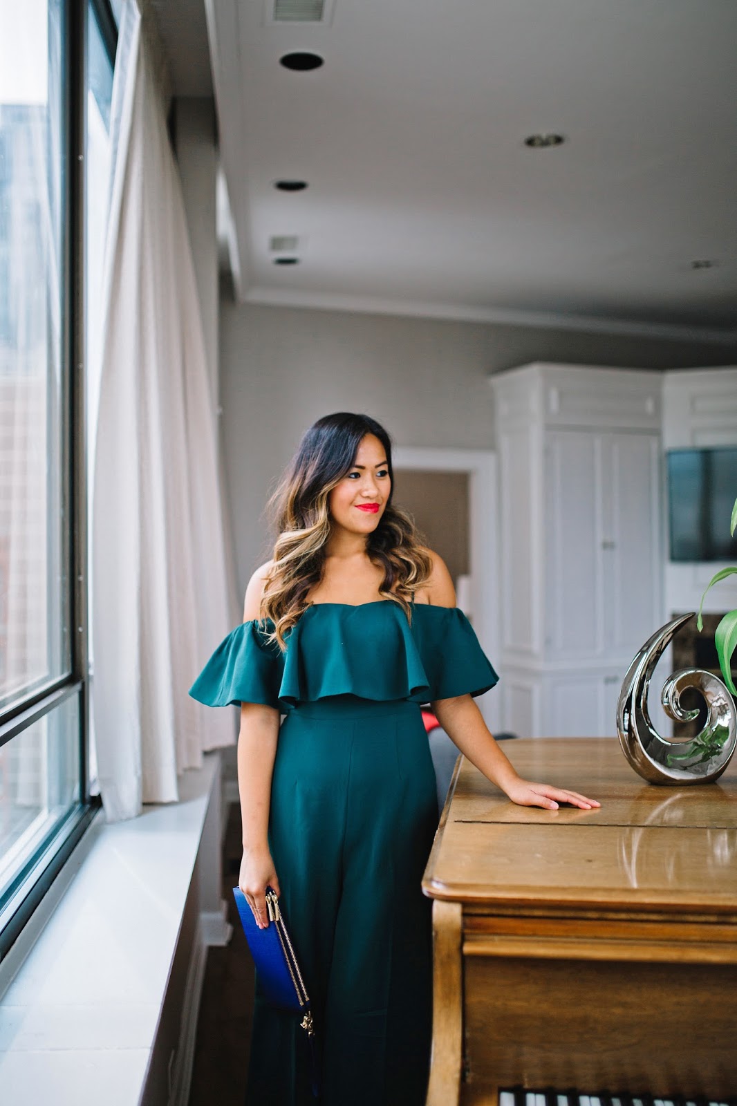 Can this penthouse be the perfect setting for this classy off-the-shoulder ruffled jumpsuit?