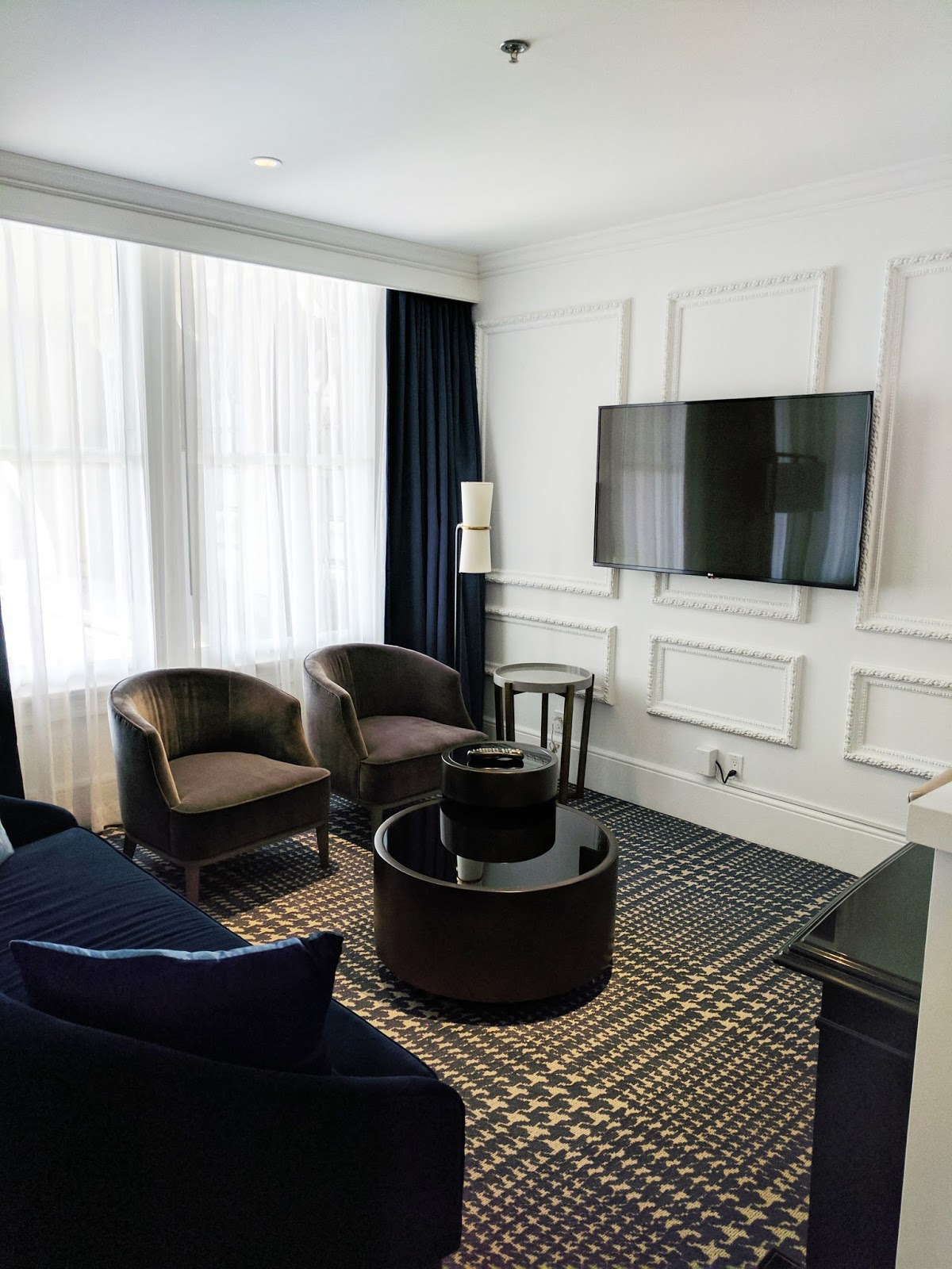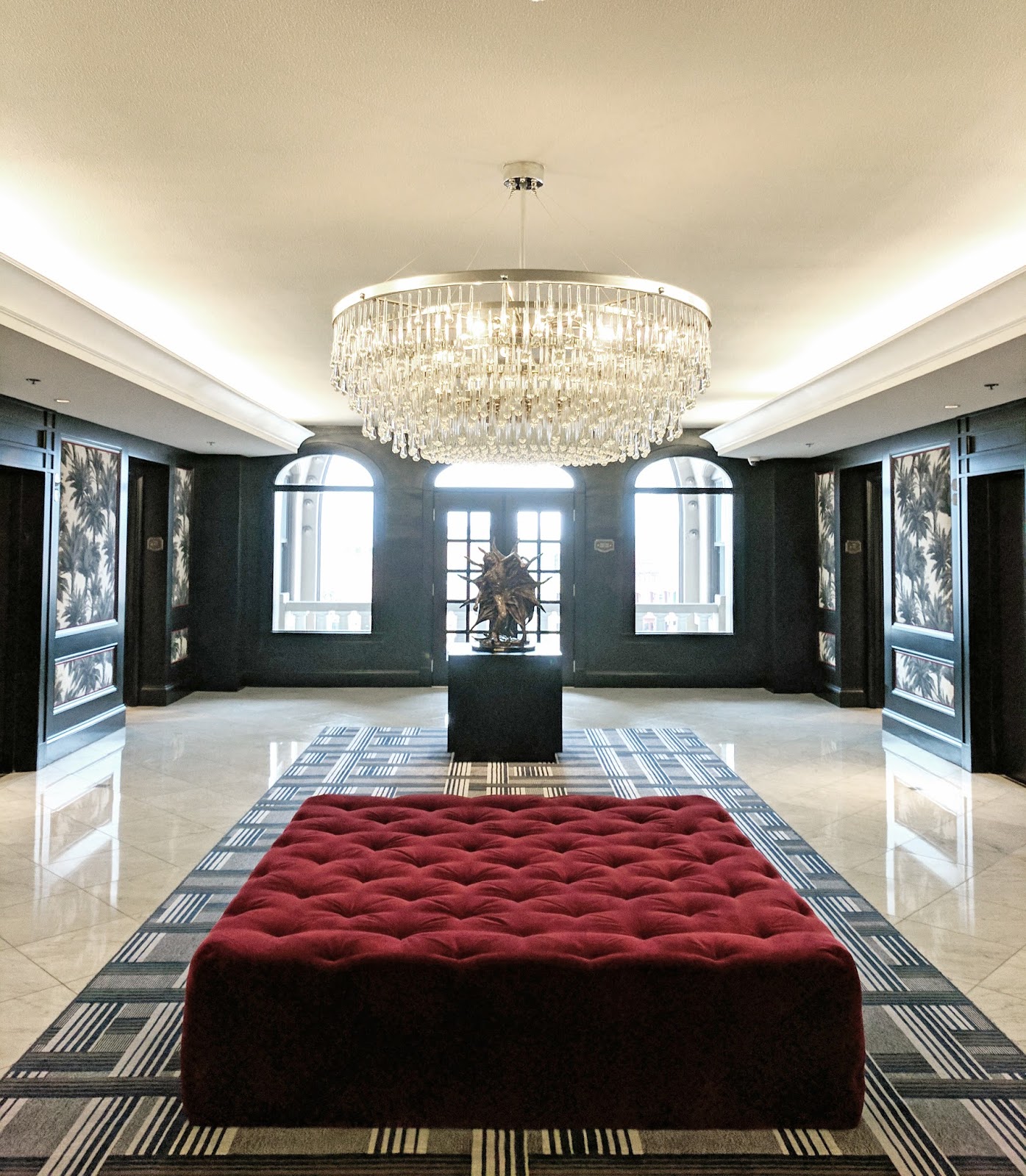 When I say this entire luxury hotel in San Diego is gorgeous; it is a true statement!! Every room of this hotel was a ‘wow’ factor. When I checked in, I headed to the elevators and as I reached my floor, I stepped into my favorite room of it all. This room (pictured above) is total #roomgoals (haha); I absolutely love the elegance of this room, from the red sofa to the dazzling chandelier and the unique patterns, this room was truly spectacular.