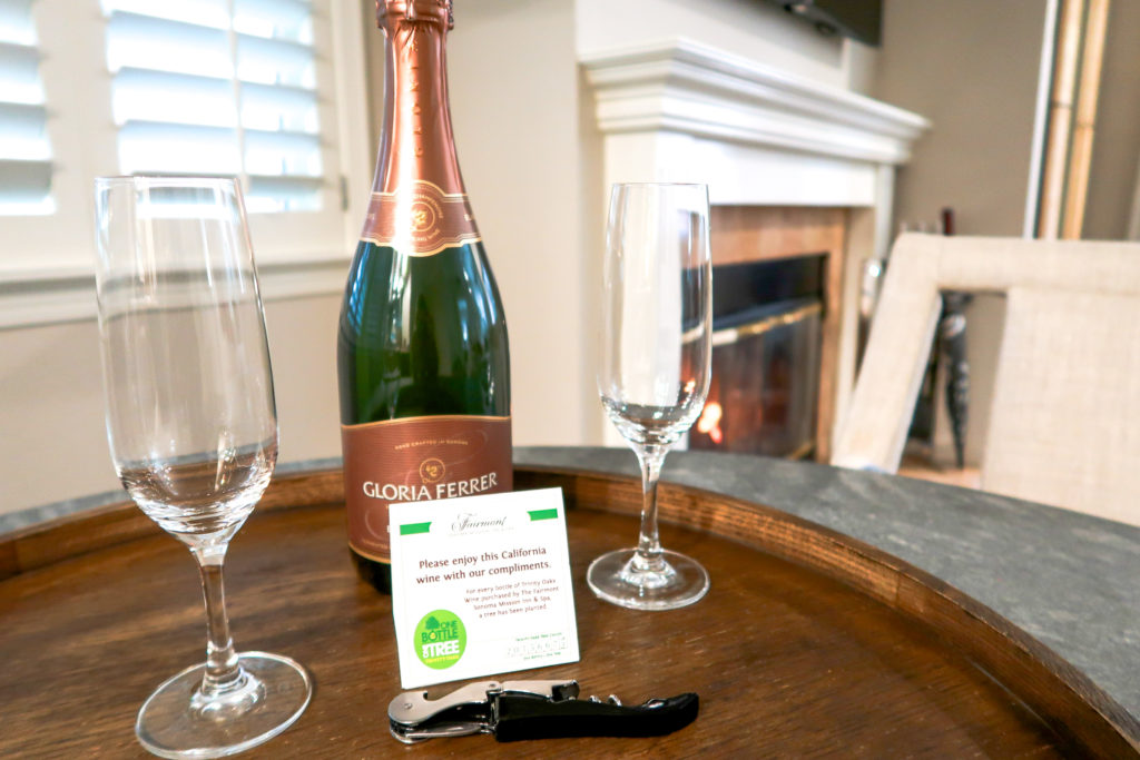 Fairmont Sonoma Mission Inn and Spa is a fairly large hotel! Like at the Grand Hyatt Kauai, we were easily lost the first time finding our room. Haha. But when we made it, we were very pleased! The hotel was kind enough to upgrade our room and we stayed in their Signature One Bedroom Suite — which featured a separate bedroom, large living room with a fireplace, large dining table, refrigerator, and full-size bathroom. Instantly we felt like home!