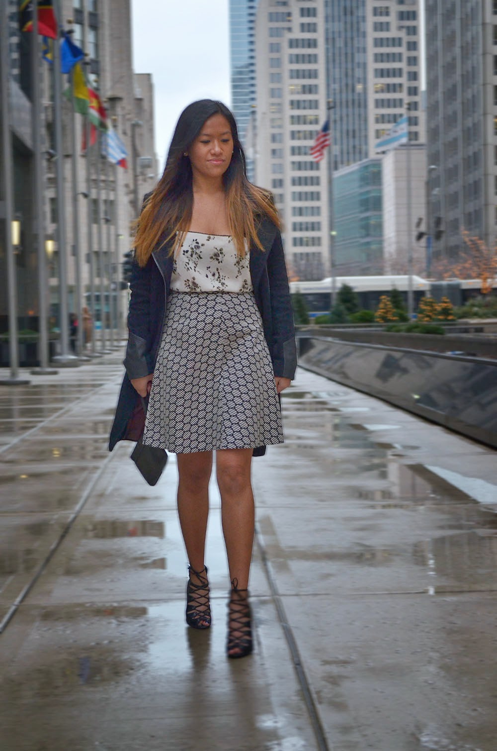 Hope you all had a wonderful Christmas! The other day I went shopping and came across this jacquard skirt from Zara and fell right in love with it. The skirt is perfect length for a classy, chic look. Instead of wearing a plain black top with it, I decided to pair it with my silk floral printed tank, and the two work lovely together!