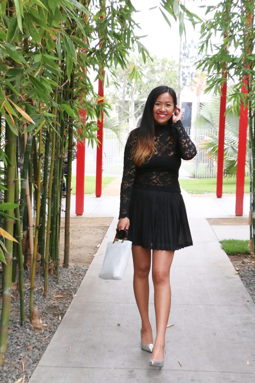 I mixed a favorite combo together: lace and pleated (check out a past post). As I said before, it is a rare occasion when I wear only black in one look, and when I do I like to play around with prints and/or textures.