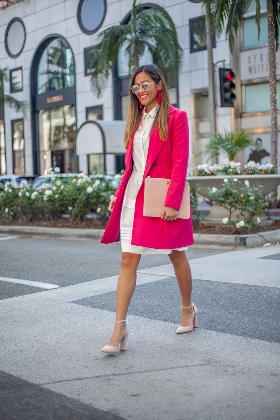 Today I confidently walked the streets of Beverly Hills in my all pink look! Pairing this sexy pink blazer dress with my casual white shirt dress and turning it into a more sophisticated yet playful look.