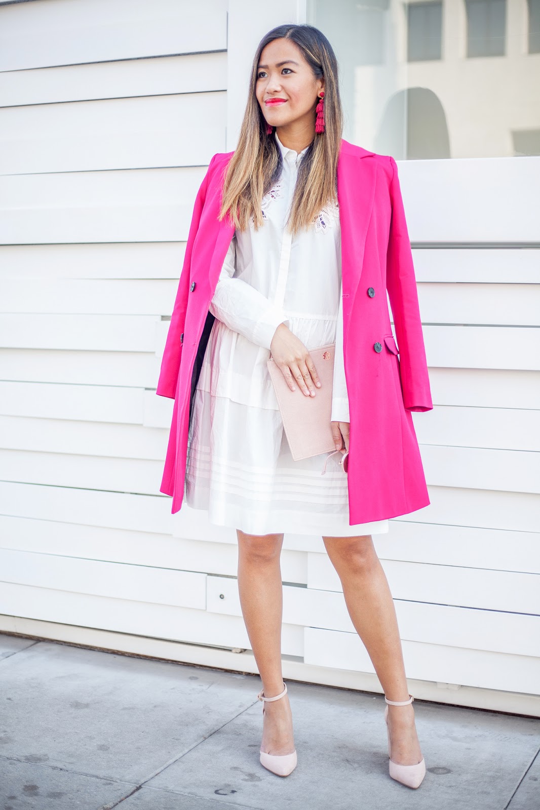 Today I confidently walked the streets of Beverly Hills in my all pink look! Pairing this sexy pink blazer dress with my casual white shirt dress and turning it into a more sophisticated yet playful look.