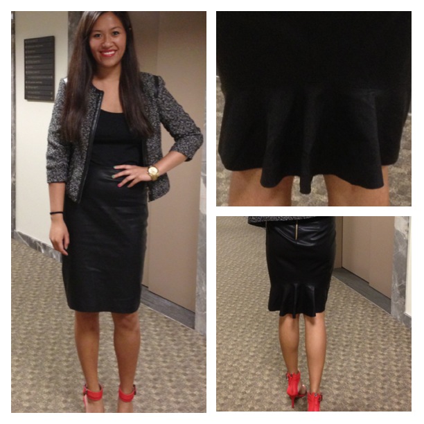 What a fun 4 day weekend off, so sad that it has to end! Back to the real world, and having to work everyday of my life again! Anyway, the best part of today was to finally wear my new leather skirt to work! =) I always wanted a leather skirt and I found this piece at my favorite store, can you guess?! ZARA! Check it out……