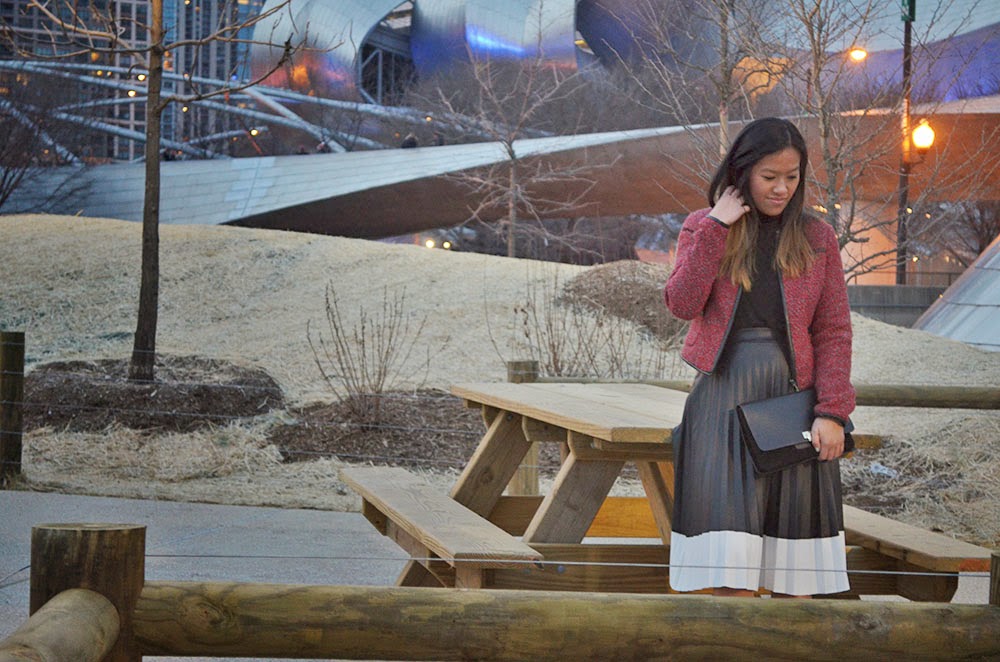 Instead of wearing my blazer with a typical black cropped pant, I decided to pair it with my color blocked pleated skirt from Akira, with a plain black turtle neck underneath. I wanted my blazer to be the highlight of this outfit, so I wore all black pieces to finish off my look.