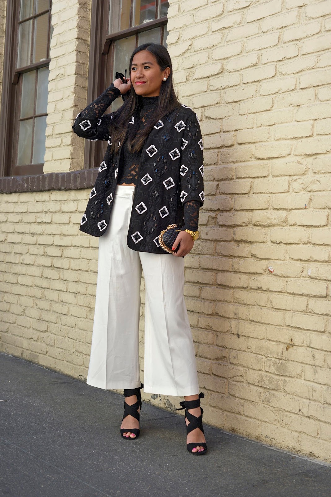Zara Culottes {similar} || Tobi Lace Crop Top {similar} || H&M Beaded Jacket {old}