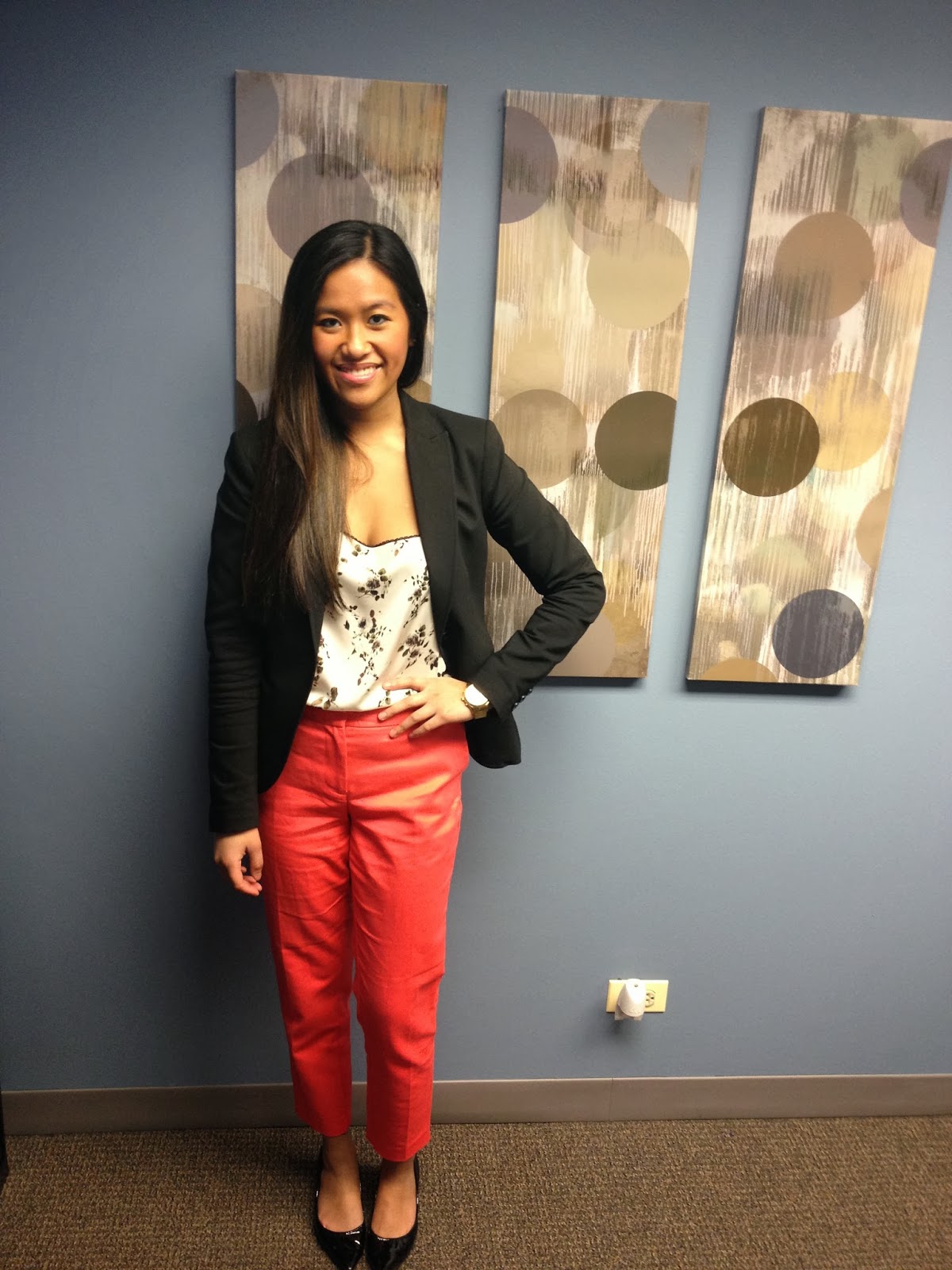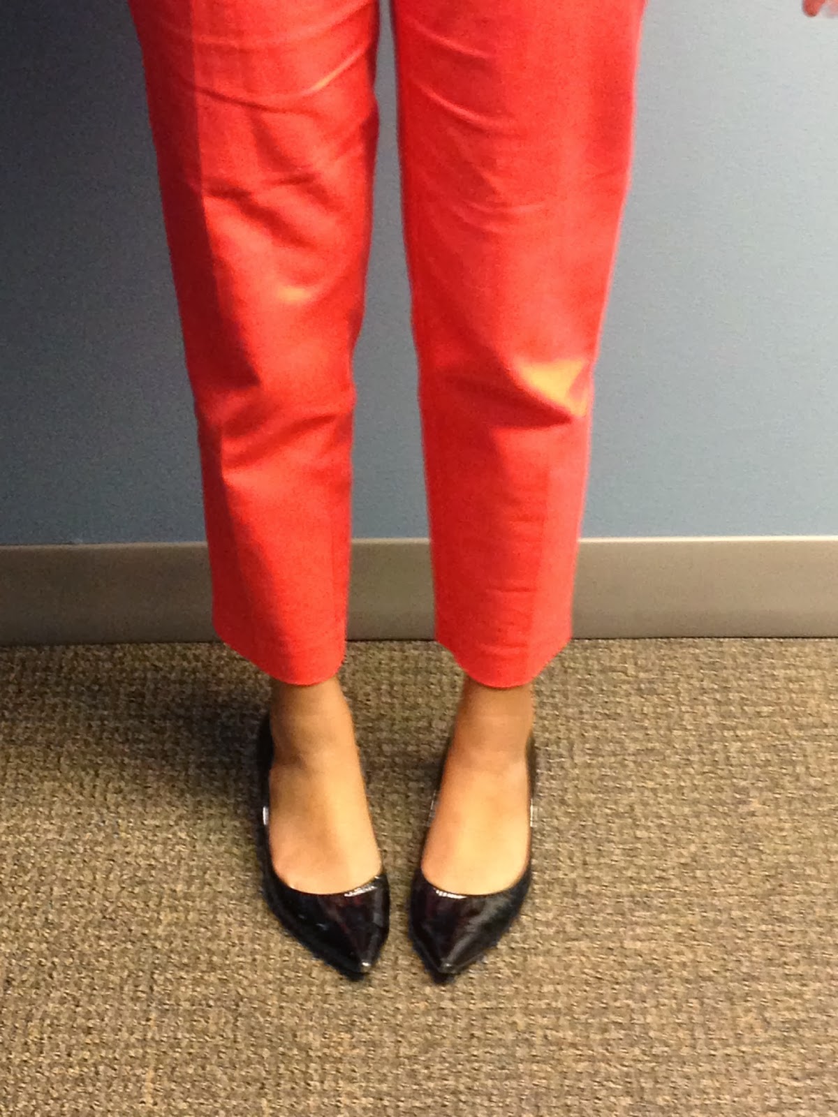 This is my Outfit of the Day! Nonetheless, it was quite a risk going outside with cropped pants and heels during this kind of season, but I decided to just do it! It was fine, until after work, when I realized that it started snowing pretty bad. Anywho, thought I would brighten up this cold January day with a bright neon pant. Check it out!