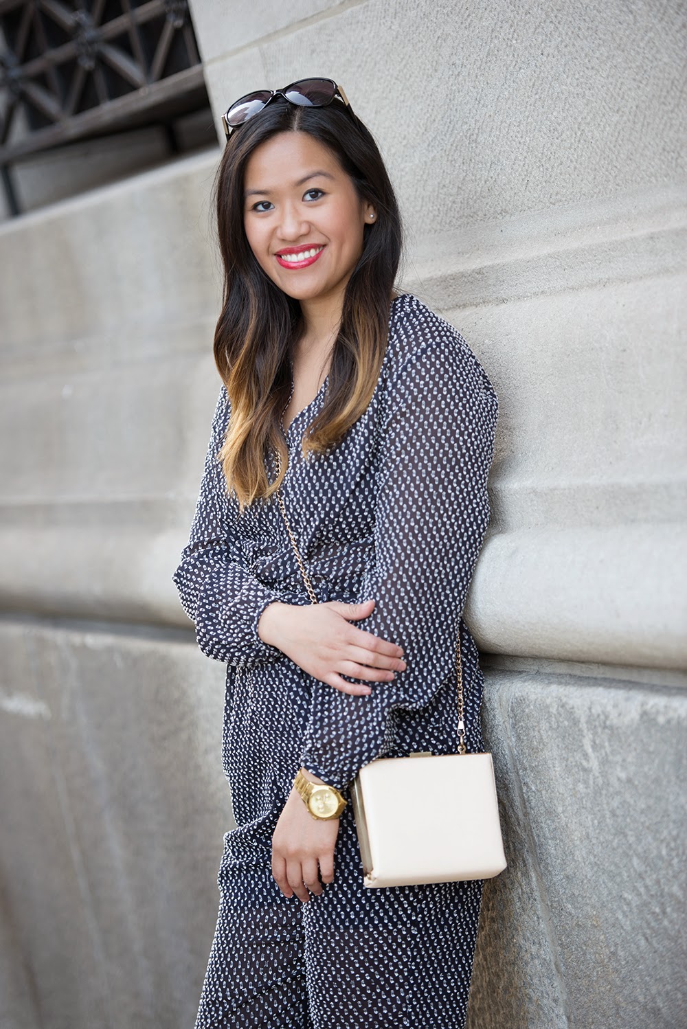 There’s nothing more to love than an all in one outfit. This simple, “one-stop-shop” look creates a dressy and classy look for any kind of event. This jumpsuit is one of my closet favorites, and can be found in the sale racks at H&M. When I found this beauty finally on sale, I HAD to buy it. I accessorized this look with simple accessories such as a nude box clutch and my gold watch, and lastly finished it off with my pointy silver heels – creating a lovely, stylish outfit!