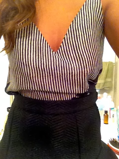 I love this look it’s super girly (like myself) and very flirty. These wedges can be dressed up or down and I chose to dress it up. I think they would look fab with olive slouchy pants (which is what I was going to wear with them initially).