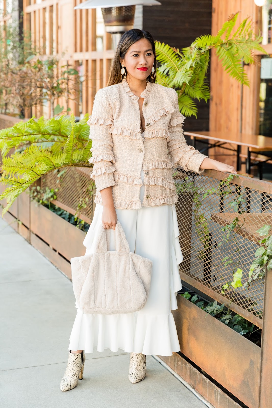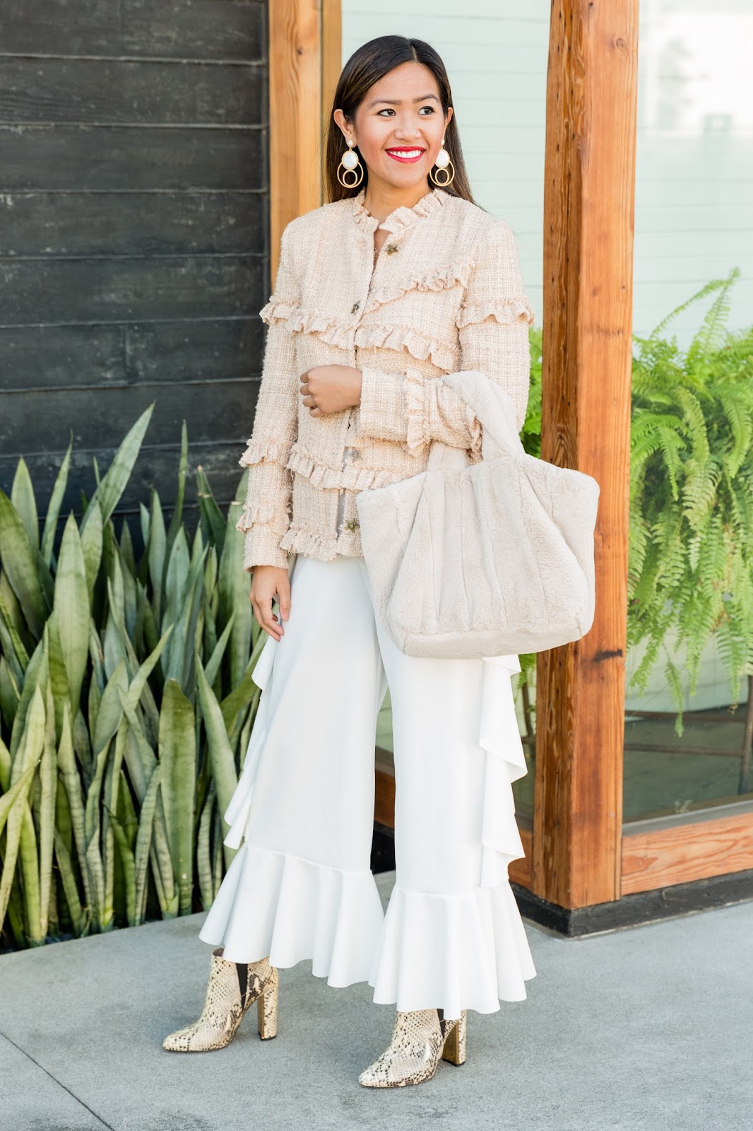 Shop // Tweed Blazer || Ruffled Pants || Faux Fur Bag