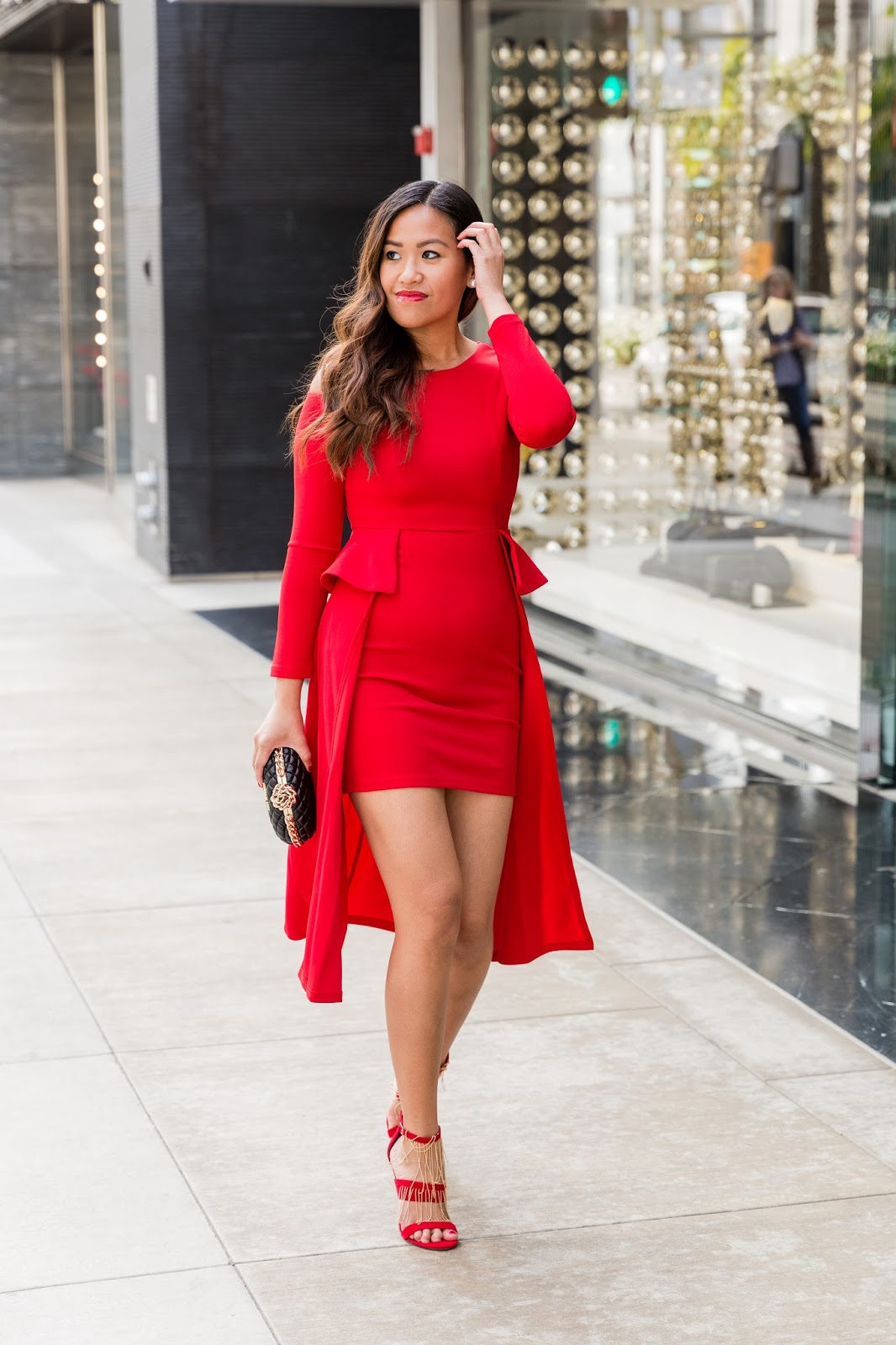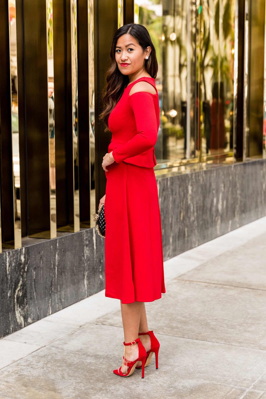 A combo of fierceness and ferociousness; I’d say this dress may just set your Christmas tree on fire {insert smirk }. Paired with red velvet chain strapped heels and a quilted gold chain clutch your Christmas look is simply completed.