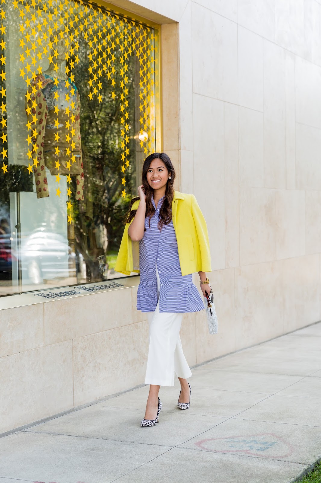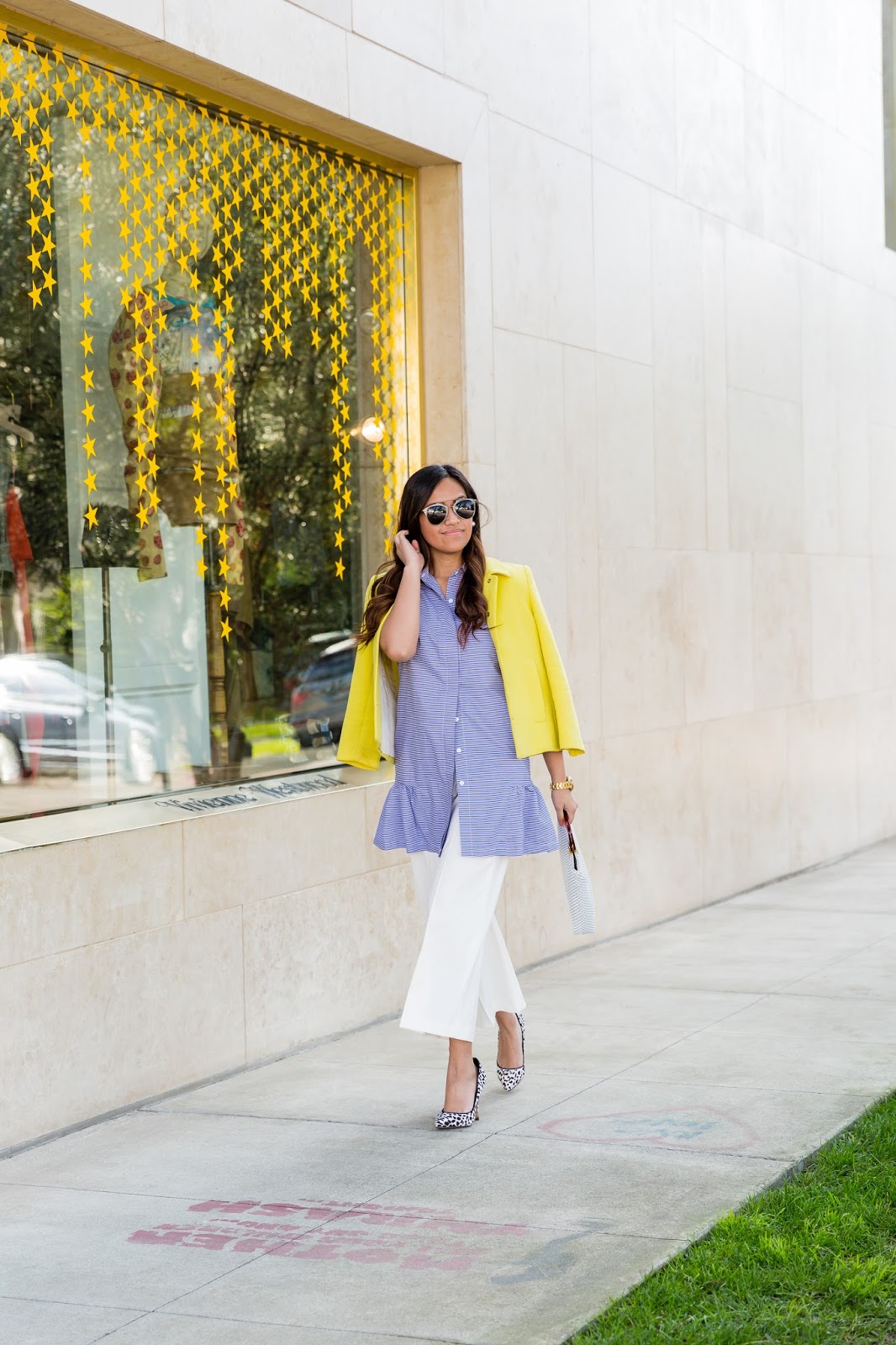 Rum and Coco Dress Shirt {c/o} || Zara Yellow Blazer {similar} || Zara Trousers