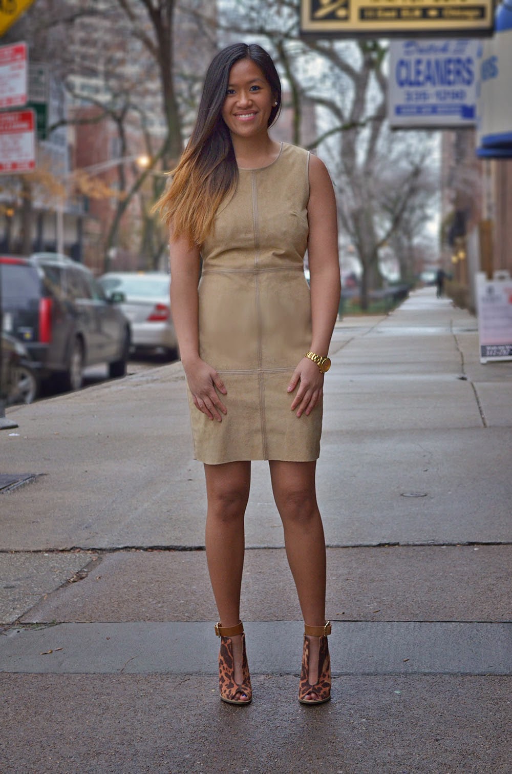 This area was exactly what I was looking for, and while we were shopping store to store, I came across this adorable, small boutique called William B + Friends on Ventura Blvd.  As we walked in the store, I immediately found a few items that I wanted to try on, and on top of that the friendly sales people greeted us and were very helpful the entire time.  Fortunately for us, they had a nice sale going on in the back, and I can never go wrong with sales so I tried on a few items from there, one in particular that I fell in love with was this suede nude dress (that also comes in black).  It was a unique boutique find, BINGO!  I don’t have much nude of anything, so this was perfect.  The front area is the only part that is suede.  Perfect look for work, or a nice dinner.