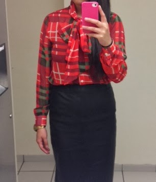 With Christmas around the corner, I thought it would be a perfect day to wear my plaid bow blouse that I purchased last year. I had bought this blouse on the ASOS website last winter, and never had the chance to wear it! The blouse is very ‘Christmas-y,’ it’s colored red and green, and has a huge BOW in the front! =)